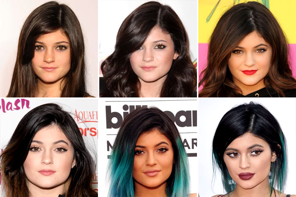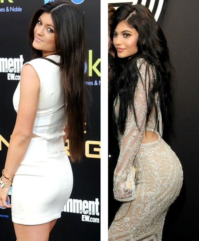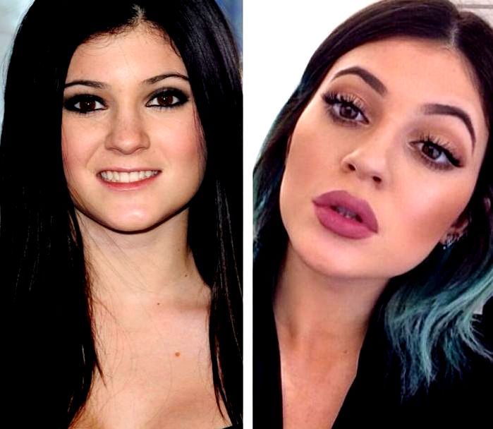 Η Kylie πρόσθεσε αρκετά cc στήθος και γλουτούς, με τη μεγαλύτερη αλλαγή όλων να παρατηρείται στο πρόσωπό της, στην προσπάθειά της να αποκτήσει σαρκώδη χείλη.
