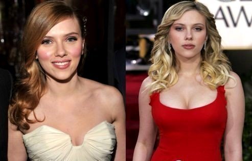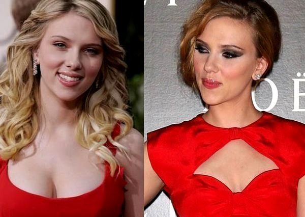 Η διαφορά –ειδικά σε ότι αφορά στο μπούστο της- είναι τεράστια. Η Scarlett, από τη μεριά της, λατρεύει τα outfits που το αναδεικνύουν, ενώ μόνο τυχαίο δε μπορεί να χαρακτηριστεί το γεγονός πως στα περισσότερα κολάζ, το «μετά» απεικονίζει την ηθοποιό με το αποκαλυπτικό κόκκινο φόρεμα που από τη στιγμή που το φόρεσε έγινε σήμα κατατεθέν της…