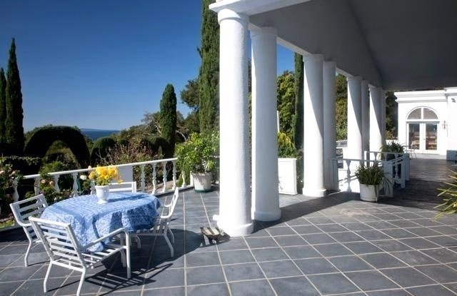 Ένα από τα καλύτερα σημεία της υπερπολυτελέστατης κατοικίας των Paltrow - Falchuk, είναι το τεράστιο μπαλκόνι που βλέπει θάλασσα και αποτελεί το ιδανικό μέρος για πρωινό. Το πράσινο δεν λείπει ούτε από εκεί, καθώς η κατοικία αυτή μοιάζει να είναι «κρυμμένη» κάπου στον Παράδεισο.