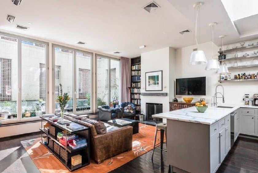 Πρόκειται για ένα διαμέρισμα 1.100 τ.μ. που βρίσκεται στον τελευταίο όροφο του κτηρίου και διαθέτει ταράτσα και 150m2 επιπλέον εξωτερικούς χώρους. Χτισμένο σε έναν λιθόστρωτο δρόμο, το σπίτι διαθέτει τρεις εγκαταστάσεις πλυντηρίων, μεγάλους φεγγίτες και σύμφωνα με την αγγελία του μεσιτικού τεράστιους χώρους για διασκέδαση.