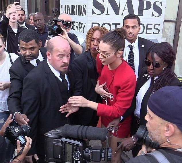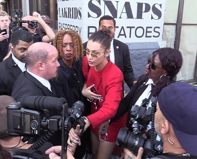 Την ώρα που η 20χρονο έβγαινε από το fashion show του Michael Kors, ο σωματοφύλακας προσπαθώντας να την προστατεύσει από τα φλας και την πίεση των ρεπόρτερ και των φωτογράφων, φαίνεται πως έσπρωξε μια γυναίκα φωτογράφο.