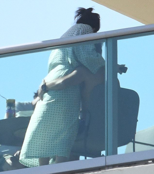 Η μελαχρινή ηθοποιός απαθανατίστηκε με τη ρόμπα της και make-up free στο μπαλκόνι ξενοδοχείου που κάνουν ολιγοήμερες διακοπές κατά τη διάρκεια του πρωινού τους.