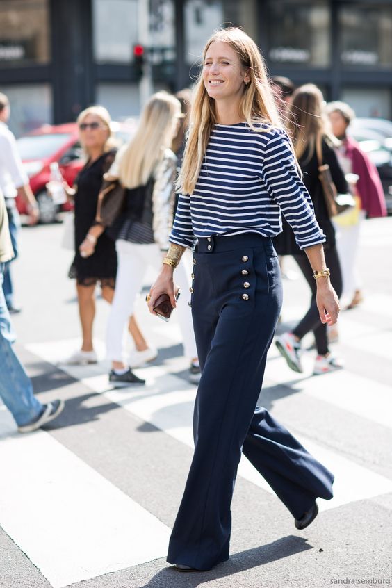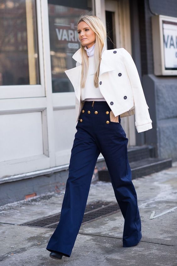 Αυτή τη φορά μια ματιά στις καλύτερες street εμφανίσεις τους για τη συγκεκριμένης σεζόν, μπορούμε να διακρίνουμε ένα ultra chic παντελόνι που φορούν και πραγματικά έχει κλέψει τις εντυπώσεις. Πρόκειται για το ψηλόμεσο παντελόνι σε φαρδιά γραμμή με τα κουμπιά στο μπροστινό μέρος και στις τσέπες. Θα τα βρεις σε διάφορες αποχρώσεις με τα κουμπιά να είναι συνήθως ανάγλυφα και χρυσά.