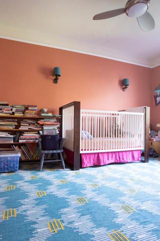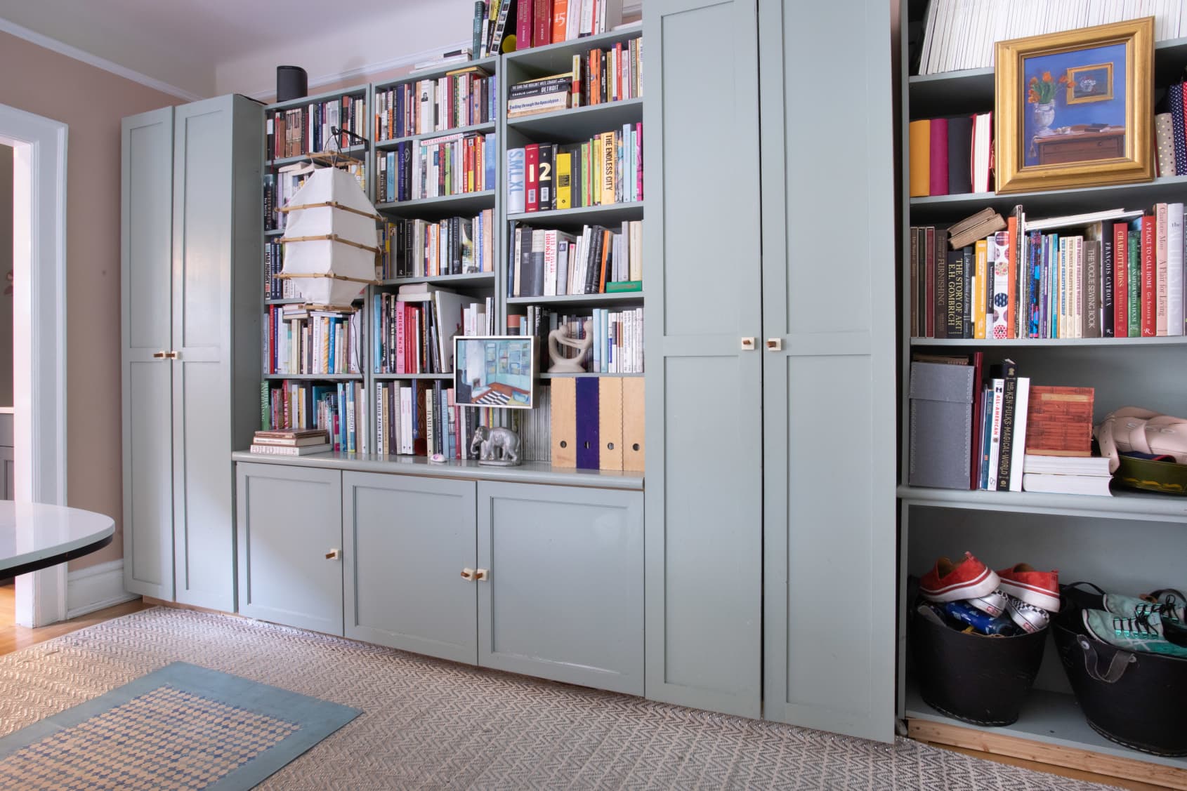 #1. Το σαλόνι δεν διαθέτει τηλεόραση και λειτουργεί ως ένα χώρος ηρεμίας και ξεκούρασης για όλη την οικογένεια. Μερικά μεγάλα ψάθινα καλάθια λειτουργούν ως αποθηκευτικοί χώροι για τα παιχνίδια των παιδιών.