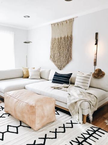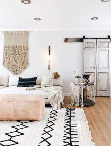 Τα χαλιά είναι σε μαροκινή διάθεση, ενώ σε αρκετούς τοίχους θα συναντήσεις μακραμέ διακοσμητικά, τα οποία υπάρχουν ακόμα και πάνω σε καρέκλες και πολυθρόνες.