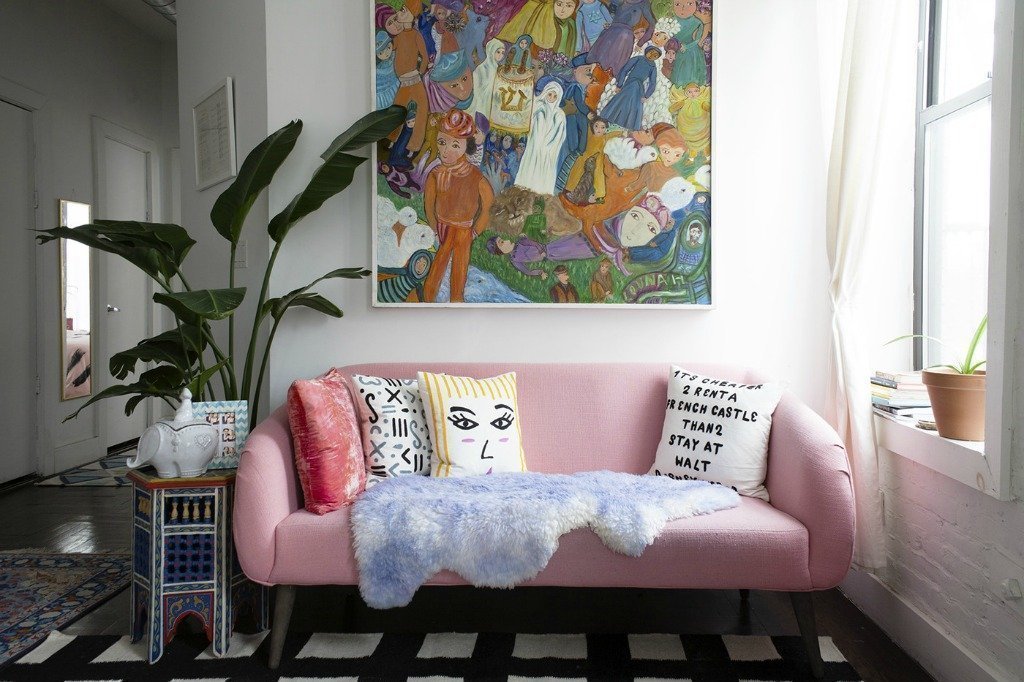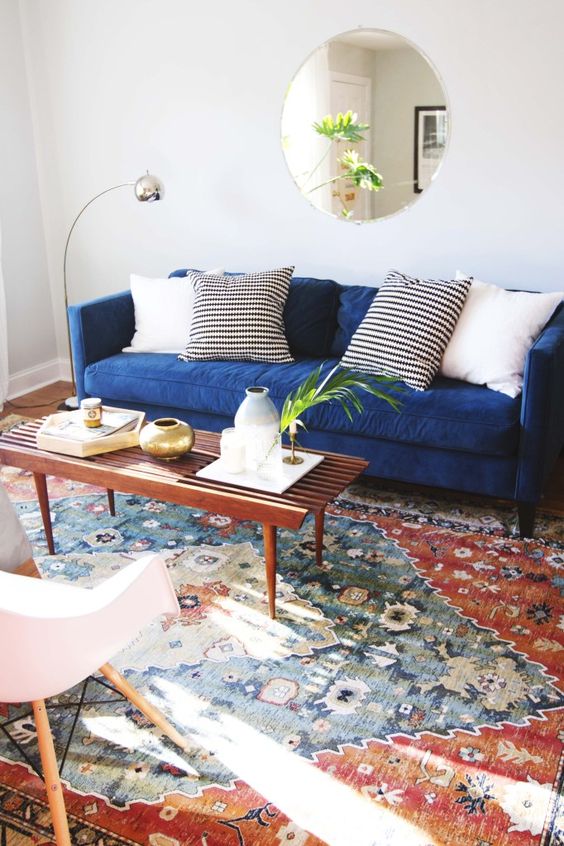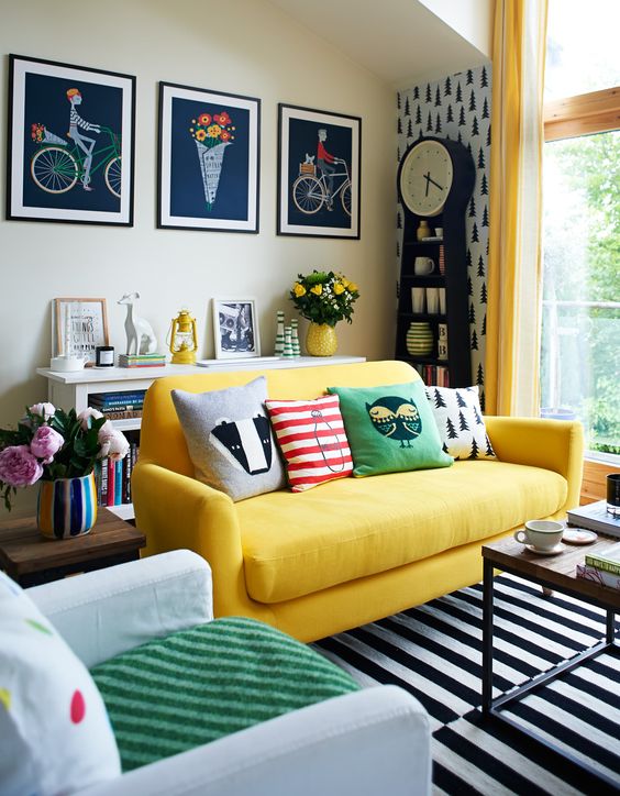 Ένας καναπές σε έντονο χρώμα για τη διακόσμηση του σαλονιού