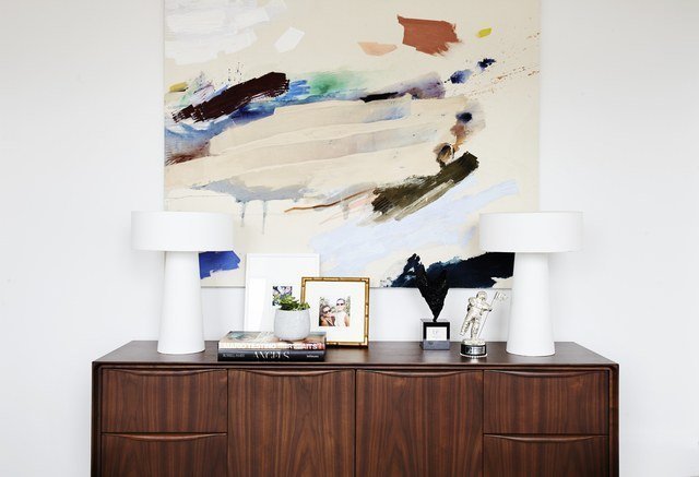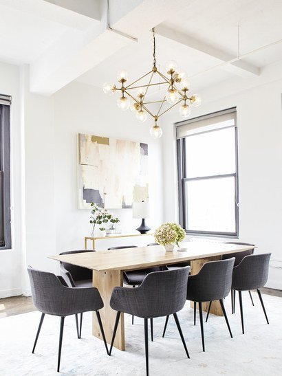 Το λευκό χρώμα κυριαρχεί σε όλους τους χώρους, ενώ το ξύλο είναι αυτό που προσφέρει μια ζεστή και οικεία πνοή παντού. Τα statement φωτιστικά, τα πλούσια χαλιά αλλά και τα διάφορα έργα τέχνης στους τοίχους είναι αυτά που χαρίζουν μοναδικές πινελιές και ομορφαίνουν το λιτό χώρο.