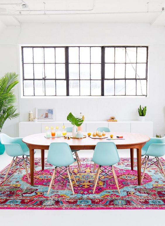 Ένας τρόπος για να έχεις μια εντυπωσιακή τραπεζαρία είναι να της προσθέσεις χρώμα. Αυτό μπορεί να συμβεί με πολλούς τρόπους. Ένας από αυτούς είναι να επιλέξεις χρωματιστά διακοσμητικά ώστε να έχεις μόνιμα το χρώμα στο χώρο σου, ενώ ένας άλλος είναι να στολίσεις το τραπέζι με πολύχρωμα κουζινικά ώστε να αλλάζει η διακόσμηση κάθε φορά ανάλογα με το ύφος και τη διάθεση που θέλεις να δημιουργήσεις.