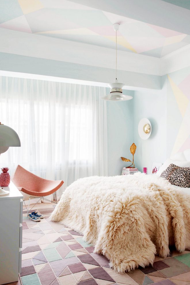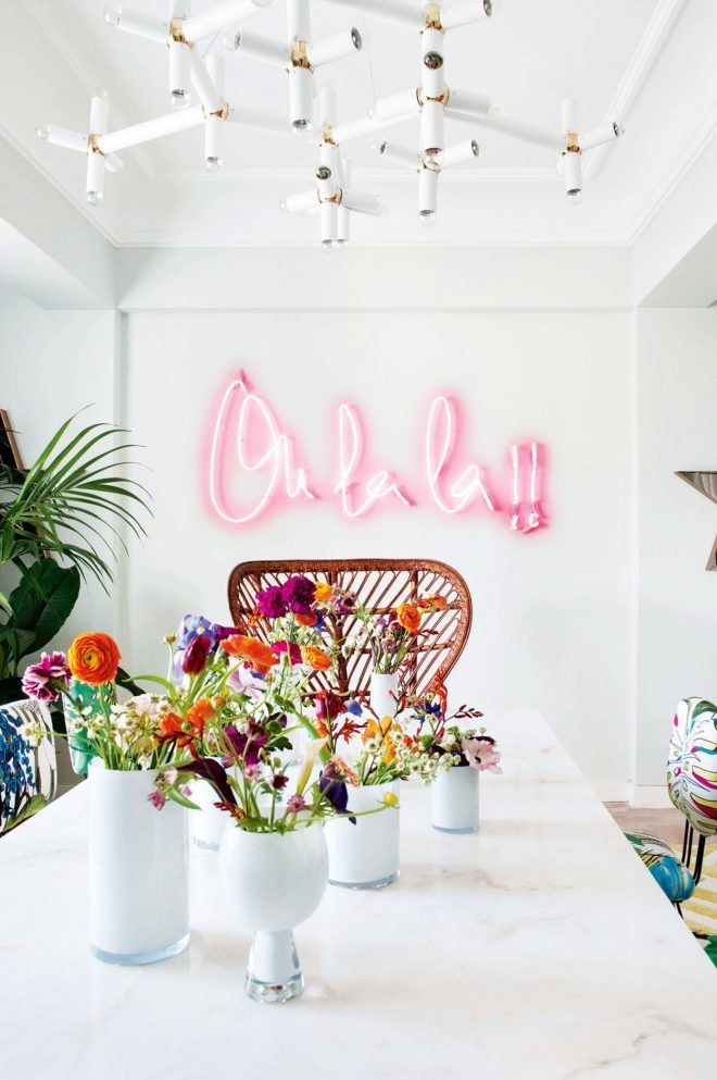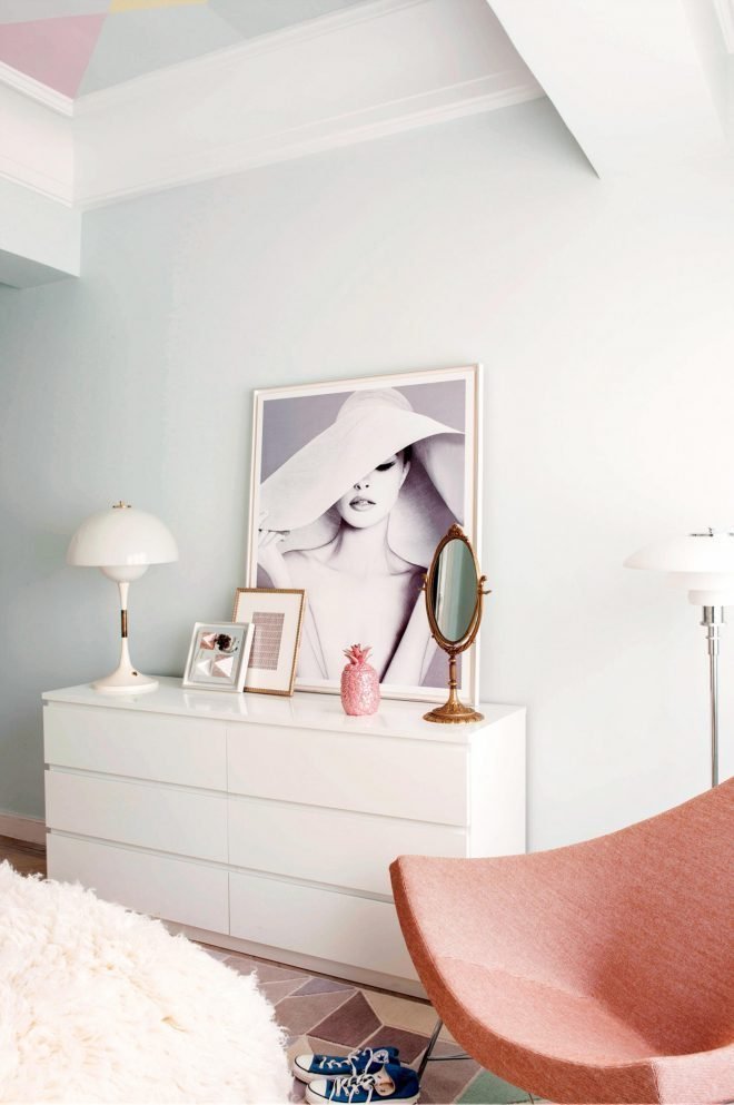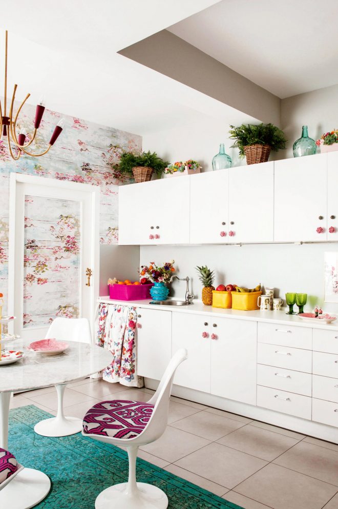 Σε όλο το διαμέρισμα θα δεις πως κυριαρχούν παστέλ αποχρώσεις της μέντας, του μπλε και του κίτρινου ενώ ένα χρώμα ξεχωρίζει περισσότερο από όλα τα άλλα και αυτό είναι το ροζ. Οι ιδιοκτήτες του σπιτιού έουν επιλέξει το συγκεκριμένο χρώμα για τον περισσότερο χώρο του σπιτιού γιατί πιστεύουν ότι το ροζ είναι ένα θετικό και ανεβαστικό χρώμα.