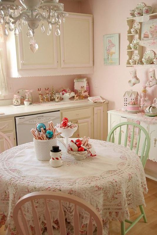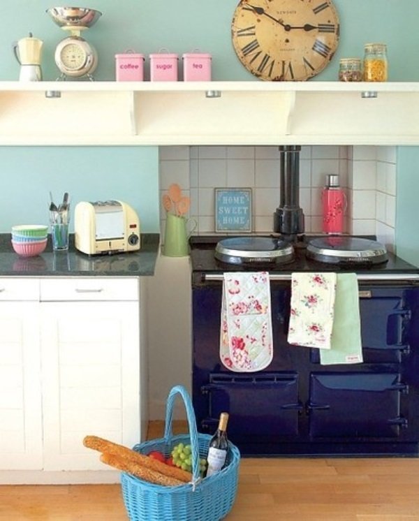 Οι συνδυασμοί που μπορούν να γίνουν είναι πολλοί. Μπορεί να επιλεγεί σα βασικό χρώμα ένα αρκετά ψυχρό, όπως το γκρι και στη συνέχεια να εμπλουτιστεί με τις παστέλ αποχρώσεις ώστε να ζεστάνει ο χώρος. Επιπλέον, τα vintage κυρίως αντικείμενα είναι αυτά που ταιριάζουν ιδανικά σε τέτοιες κούζινες και δίνουν τελικά το υπέροχο αποτέλεσμα μιας ονειρεμένης κουζίνας.
