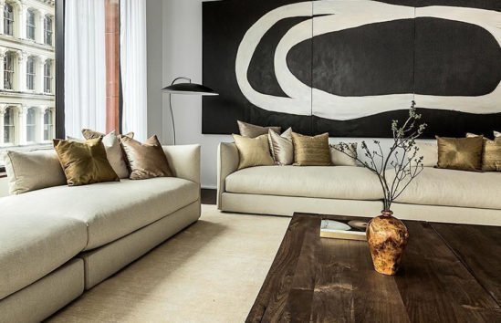 Το διαμέρισμα έχει μόλις δύο υπνοδωμάτια και δύο μπάνια, ενώ η διακόσμησή του θα έλεγε κανείς πως είναι σύγχρονη με μίνιμαλ αλλά ταυτόχρονα και εκκεντρικά στοιχεία. Σε όλο το σπίτι κυριαρχούν οι γήινες αποχρώσεις με το λευκό, το μαύρο και το μπεζ να είναι οι τρεις βσικές αποχρώσεις.