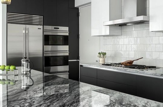 Το πιο εντυπωσιακό δωμάτιο του σπιτιού είναι η κουζίνα, αφού οι μαρμάρινοι πάγκοι της προσφέρουν μια glamorous αισθητική, ενώ την κάνουν να διαφέρει από όλο το σπίτι.
