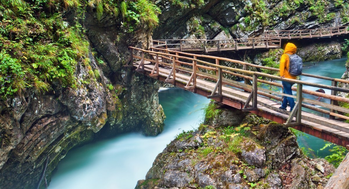 Το Vintgar Gorge απέχει 4 χλμ. από τη λίμνη, δηλαδή περίπου 2 ώρες περπάτημα και πρόκειται για μία βαθιά χαράδρα που καταλήγει σε έναν καταρράκτη.