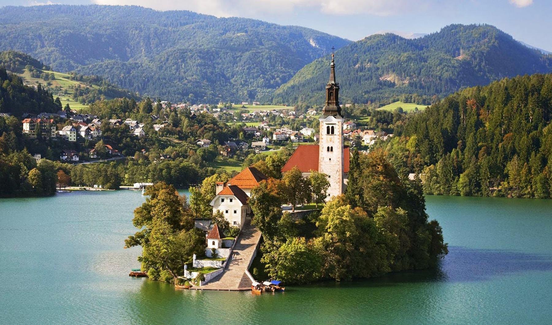 Ο λόγος για τη λίμνη Bled, με τη χαρακτηριστική μεσαιωνική εκκλησία στη μέση.